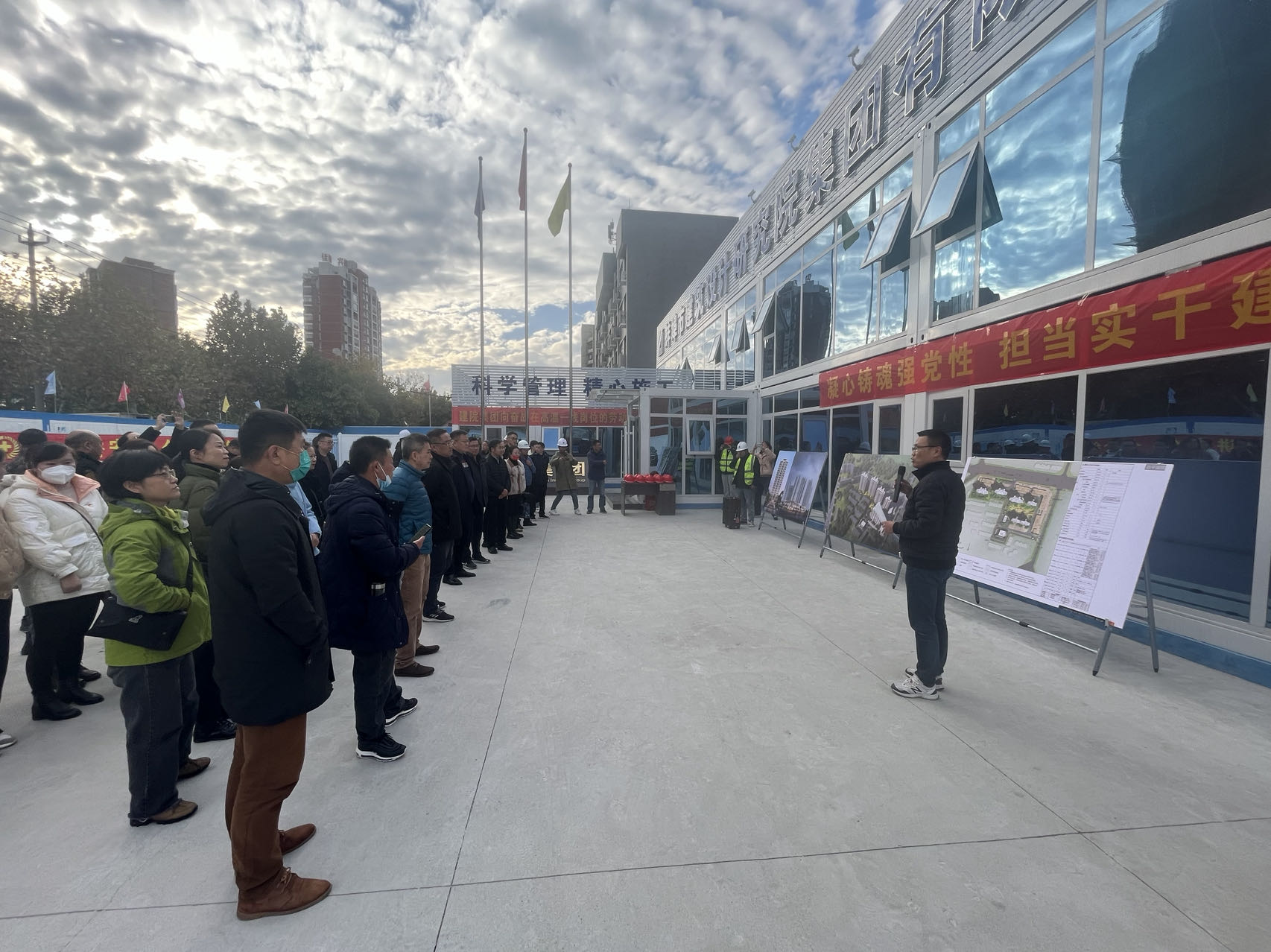 11月13日,集團(tuán)黨委組織集團(tuán)機(jī)關(guān)黨支部全體黨員、建院集團(tuán)、糧食集團(tuán)、城開公司基層黨組織成員至蚌埠市建筑設(shè)計(jì)研究院集團(tuán)有限公司開發(fā)代建的固鎮(zhèn)縣保障房項(xiàng)目——建院·古原名邸項(xiàng)目現(xiàn)場參觀。