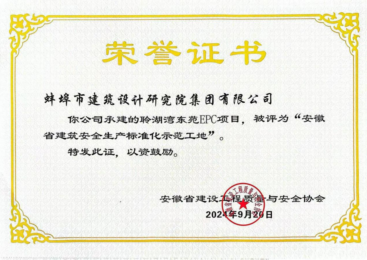 近日,建院集團(tuán)運(yùn)營(yíng)管理的古原名邸項(xiàng)目、靜湖灣Epc項(xiàng)目和聆湖灣東苑Epc項(xiàng)目榮獲“安徽省建筑安全生產(chǎn)標(biāo)準(zhǔn)化示范工地”稱號(hào)。