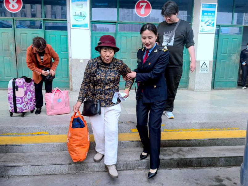 在熙攘的站區(qū),有一群始終在一線崗位上默默堅守的勞動者。在筆者按下相機快門的瞬間,一位站務員正攙扶著步履蹣跚的老人乘車,這名交通服務人員身姿挺拔,制服整潔,眼神專注且充滿關(guān)切,她的動作輕柔,傳遞著溫情與關(guān)懷,仿佛在告訴老人不必擔憂。行動不便的老人因為工作人員的陪伴而多了幾分安心,緩緩走出的每一步都像是在訴說著“有你,我放心”。